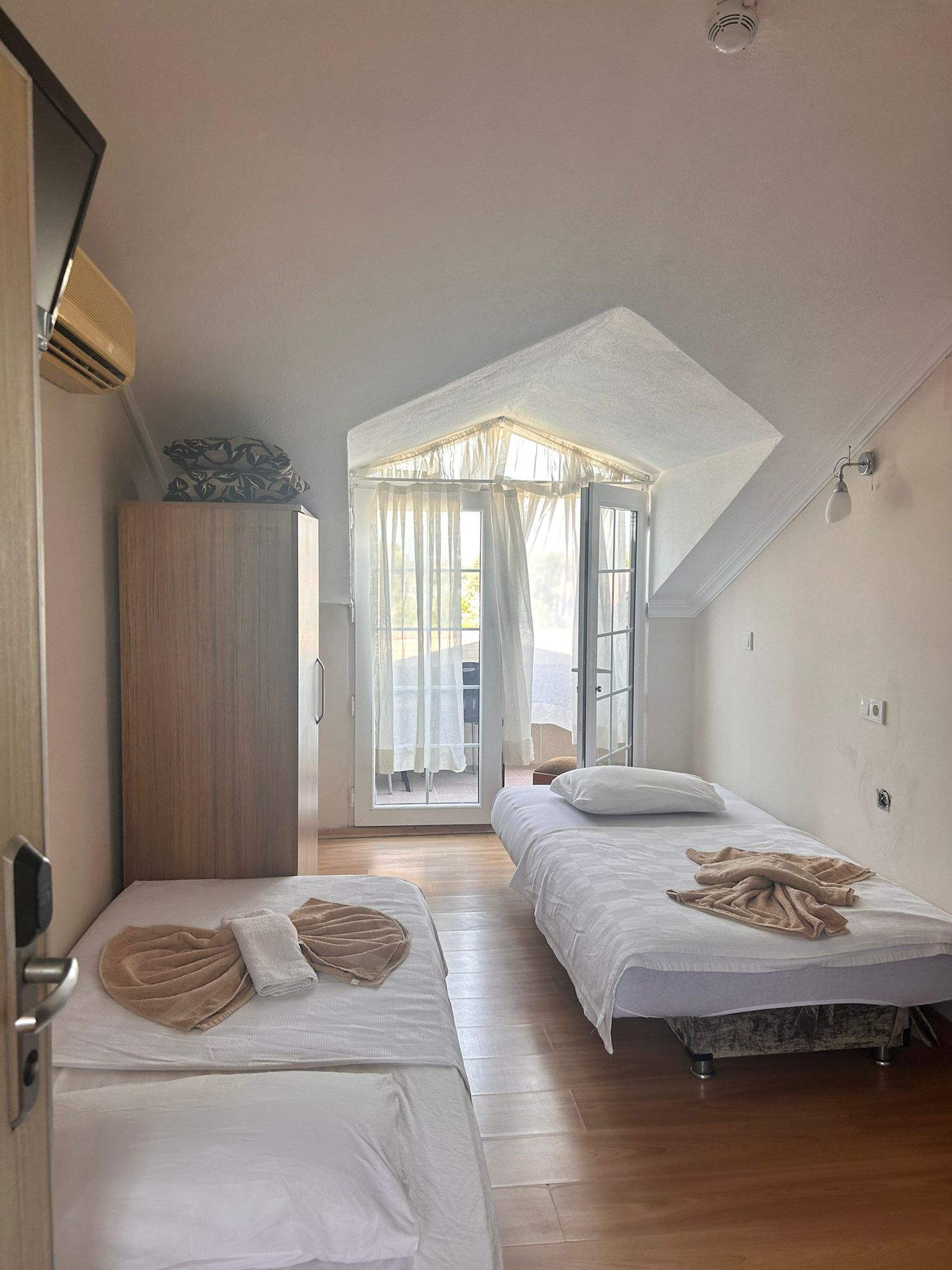 3 kişilik Comfort odamız; 1 double yatak ve kanepe ile geniş ve konforlu bir alan sunar. Minibar, TV, klima ve gardırop standarttır.